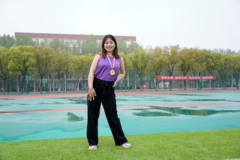 ,靠的是在繁忙的学生工作间隙坚持锻炼,我是冠军,更是老师,希望更多同学能走向操场,‘壮’起来!”