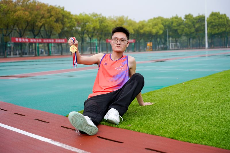 “跑步锻炼我的反应能力和爆发力,铅球教会我为人要沉稳与坚定。作为校足球队的一员,感谢队内多元化的训练模式,让我既能快如闪电,又能坚如磐石!”