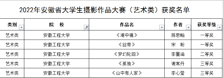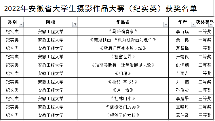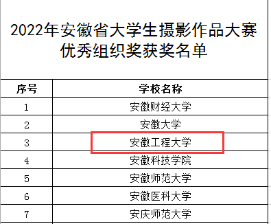 本网讯 近期,由安徽省教育厅主办的2022年安徽省大学生摄影大赛公布获奖结果。我校共获得奖项16项,其中一等奖5项、二等奖6项、三等奖5项。学校荣获优秀组织奖,9位老师获得优秀指导教师奖。