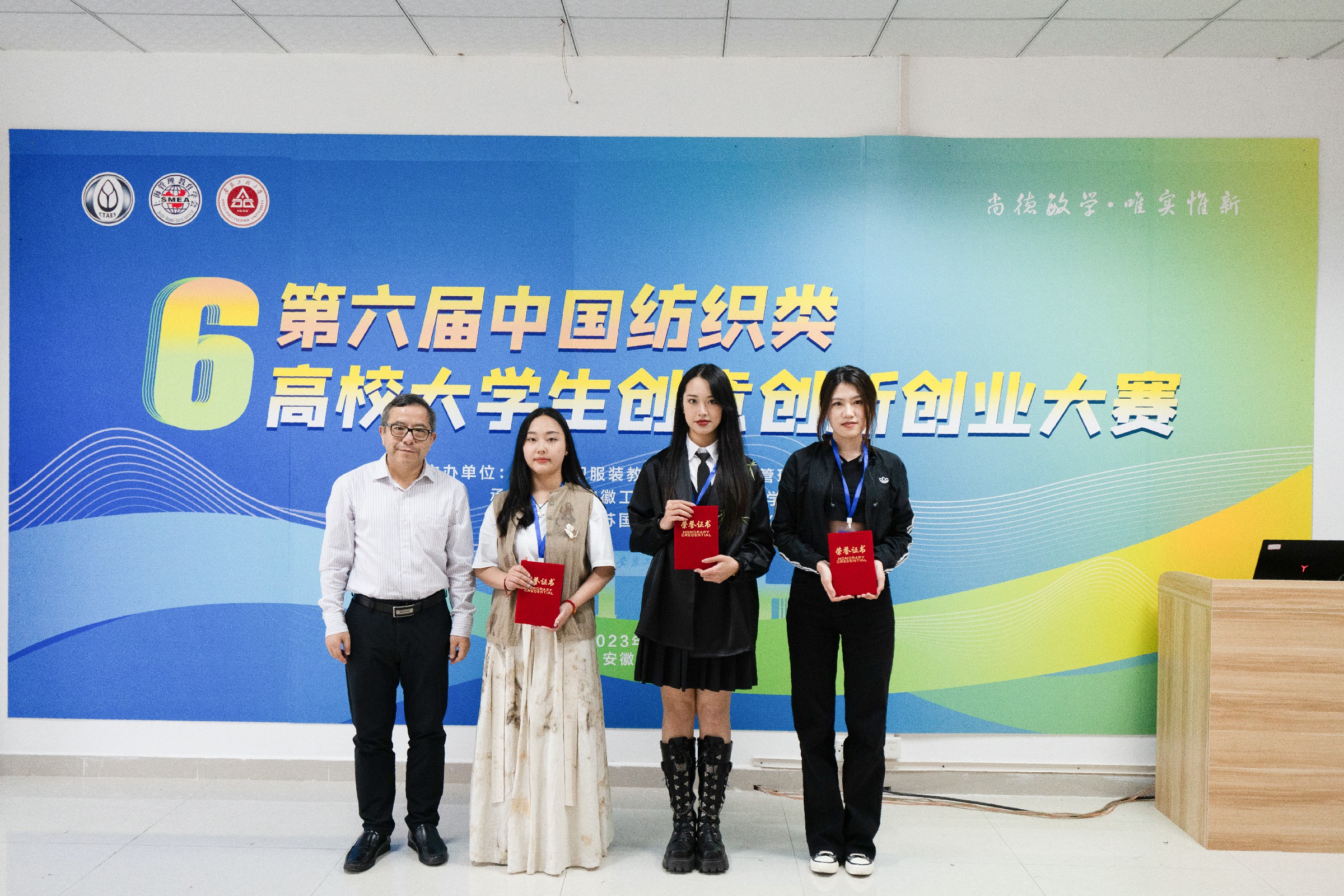 在决赛环节,大赛吸引了来自东华大学、江南大学、苏州大学、四川大学、北京服装学院等高校的积极参与,历经初赛、复赛,54项作品进入决赛。决赛以项目答辩的方式进行,经过激烈角逐,最终评选出特等奖3项、一等奖8项、二等奖16项、三等奖27项。