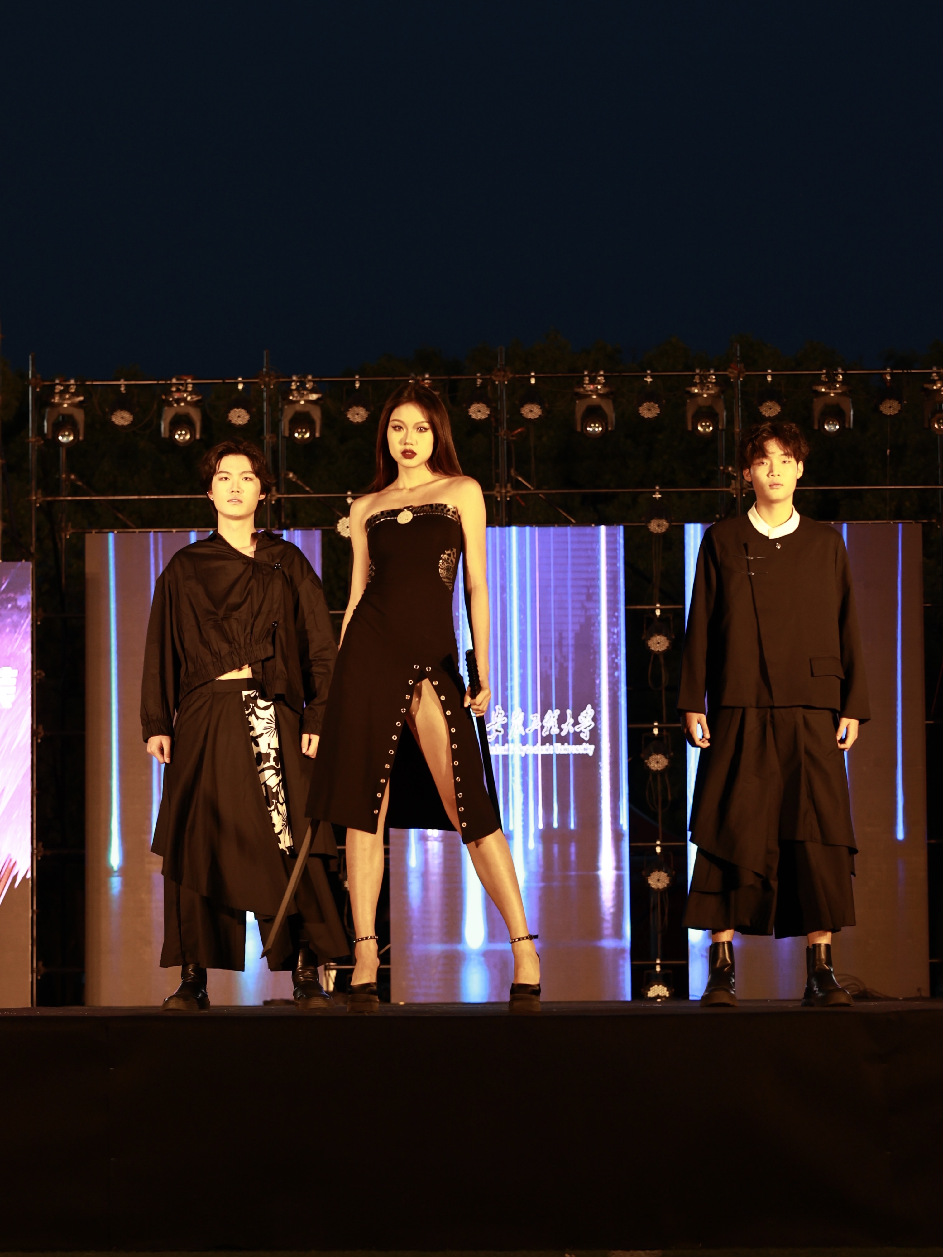 本次时装秀分“黛青茶白”“依衣惜别”“云想衣裳”3个主题,集中展示了3个系列40余套服装。“黛青茶白”系列作品古典优雅的新中式风格直击眼球,服装设计巧妙地融合了古典与现代元素,完美体现了多元文化的风采魅力,服装表演专业的学子们发挥专业特长,踩着自信优雅的步伐,赋予服装以生命的演绎,将清婉含蓄的中式美学发挥得淋漓尽致;“依衣惜别”系列作品是服装与服饰设计专业学生的毕业设计,年轻的设计师们用具象服装彰显他们的抽象概念,一针一线中凝聚的是他们付出的心血,饱含的是他们对校园的留恋;“云想衣裳”系列中,模特们演奏出的是属于青春的狂想曲,他们在光与影的尽头跳跃穿梭,自由搭配出他们的时尚态度。