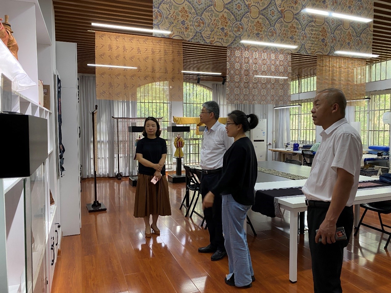 阮爱民一行来到纺织服装学院,先后参观了芜湖浆染传习基地、三维服装自动订制实验室、学院党建宣传廊,并就基层党建工作、学科发展、人才培养等情况进行现场交流。