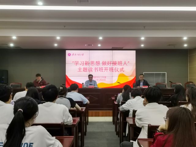 本网讯 5月22日,学校在图书综合楼202室举行“学习新思想 做好接班人”读书班开班仪式,校党委常委、副校长郑健出席开班仪式并讲授主题党课。学生处党支部、读书班全体学员参加开班仪式。