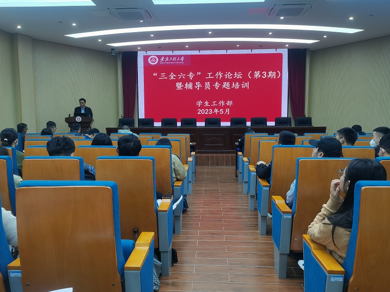 本网讯 5月24日,学校在行政楼104会议室举行“三全六专”工作论坛(第3期)暨辅导员专题培训会。校党委常委、副校长郑健,各学院党委副书记、全体辅导员、学工部工作人员参加了活动。活动由学工部部长黄炜主持。