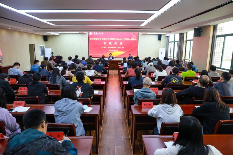 本网讯 为深入开展学习贯彻习近平新时代中国特色社会主义思想主题教育,不断提升学习质量,增强干事担当能力水平,5月24日,校党委副书记、校长卢平在行政楼1314会议室讲授题为《锚定“学思想、强党性、重实践、建新功”,奋力推进学校高质量发展》的专题党课。校党委常委、宣传部(统战部)部长孙浩然主持。机关部门9个党支部党员和主题教育办公室人员参加。