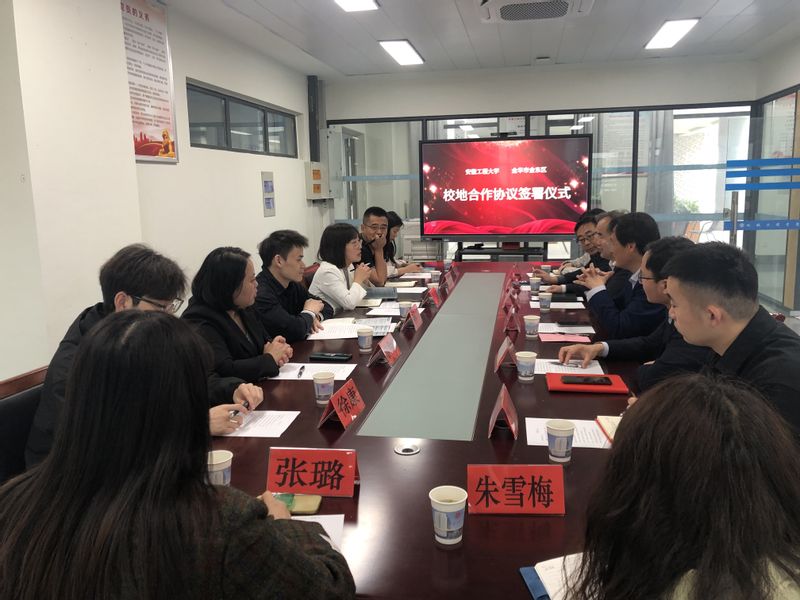 推介会前,机械工程学院党委书记伊长文、副书记秦广虎、学生处副处长郭全根等与金东区人社局负责人及企业人事主管就建立就业实习基地、产学研合作等进行了深入交流。金东区人社局与就业指导中心分别代表双方签订了校地人才合作协议。