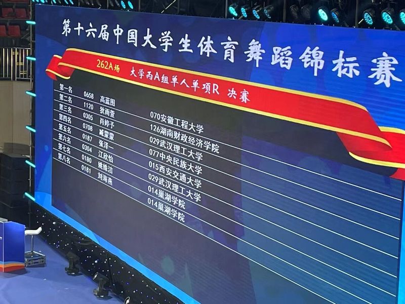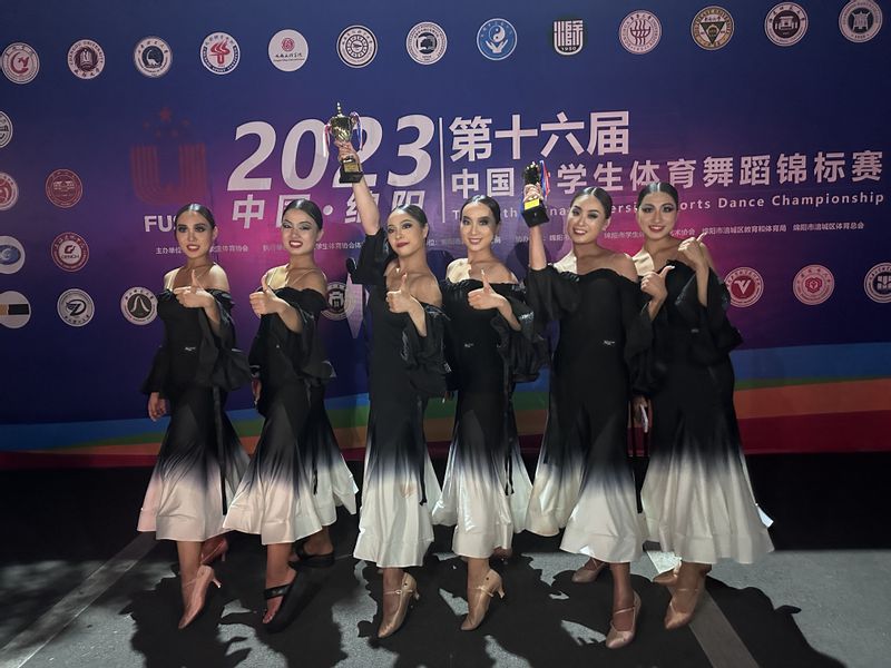 中国大学生体育舞蹈锦标赛是全国大学生体育协会举办的最高级别官方体育舞蹈比赛。本次比赛共有全国141所高校的1700余名运动员参赛,创历届比赛规模之最。我校共派出15名运动员参赛,由青年教师陶惠慧担任教练员。比赛期间,在教练和队员的共同努力下,我校学子顽强拼搏,在全国高校高手云集的顶尖赛场上脱颖而出,最终获得1个个人第一、1个团体第一,多个项目的第二、第三的优异成绩。我校代表队凭借精湛的技术、良好的精神风貌和优异的总体成绩捧得体育道德风尚奖。陶惠慧老师荣获优秀教练员奖。
