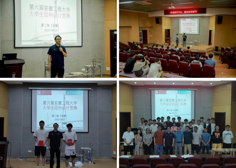 本网讯 6月3日,由教务处主办、建筑工程学院承办的校第六届结构设计竞赛暨安徽省第六届大学生结构设计竞赛选拔赛决赛在C座3楼报告厅举行。本次结构设计竞赛共评出团体一等奖2名,团体二等奖4名,团体三等奖9名,并推选3个团队代表学校参加7月3日至6日在黄山学院举办的第六届安徽省大学生结构设计大赛暨第十六届全国大学生结构设计竞赛选拔赛。