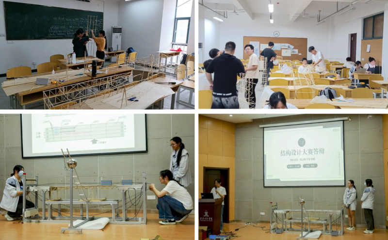 据悉,本次结构设计竞赛自4月11日开始报名,共吸引了29支团队报名参赛,每队3名队员。参赛成员分别是来自土木工程、工程管理和建筑学等专业的各年级学生。学院高度重视本次设计竞赛,5月23日,邀请合肥工业大学王辉教授为学院师生进行结构设计竞赛的指导,从材料购置、制作场地、教师指导等方面全力支持学生们参与竞赛。本次竞赛分为5月27日的初赛和6月3日的决赛,两场比赛均进行模型加载测试,再结合两场加载测试确定最终加载表现分(满分80分),评委根据模型理论方案、模型制作质量、现场陈述与答辩表现等评定设计和制作表现分(满分20分)。本次结构设计竞赛提高了学生们的创新意识、实践能力和团队协作能力,学院将进一步加大对学科竞赛支持力度,以赛促学,培养高素质应用型人才。