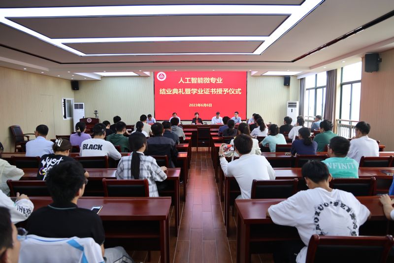 本网讯 6月6日,首期人工智能微专业结业典礼暨学业证书授予仪式在A座1314会议室举行。校党委副书记苏国红出席会议,教务处和人工智能学院相关负责人、教师代表、人工智能微专业全体学员参加会议。人工智能学院党委书记任家钱主持会议。