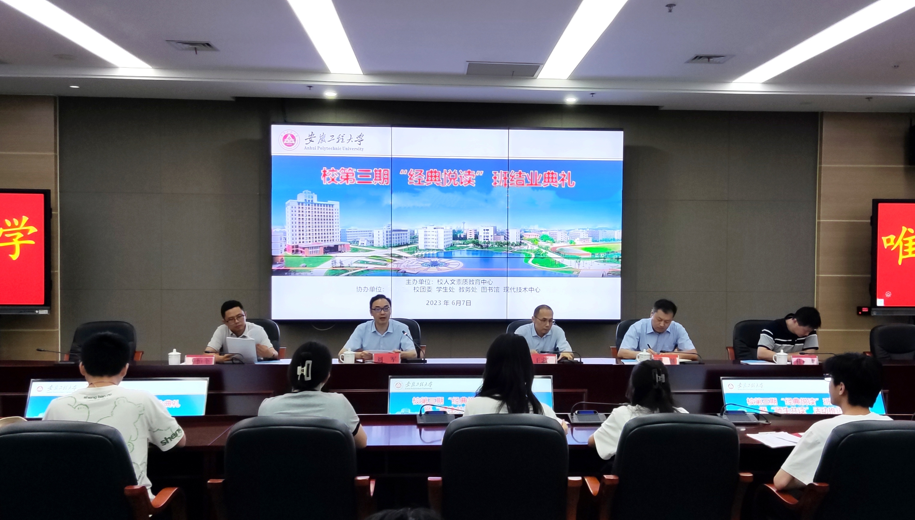 本网讯 6月7日,校第三期“经典悦读”班结业典礼在图书综合楼201室举行。图书馆、教务处、团委、学生处负责人出席典礼,典礼由人文学院(人文素质教育中心)院长(主任)刘军主持。