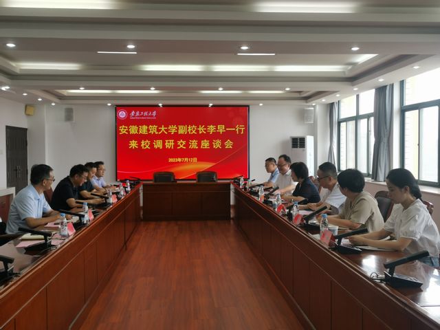本网讯 7月12日,安徽建筑大学党委常委、副校长李早来校调研交流。校党委常委、副校长郑健,党委常委、宣传部孙浩然出席座谈会。