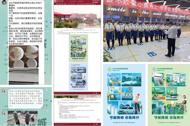 多方联动,强化节约意识提升。多部门多科室紧密联动,为节能降碳做努力。化学与环境工程学院组织环保协会主动深入社区,向当地社区居民宣传节能环保知识,通过官方QQ,积极宣传雨水收集灌溉、光盘行动、节约用电、绿色出行、垃圾分类等绿色发展理念,与师生共享互动,增强师生节能减排意识。膳食服务中心在食堂悬挂条幅、张贴宣传画,实行小份菜,倡导光盘行动,加强食堂节约粮食宣传;校园管理中心加强教学楼等公共场所用能检查,杜绝长流水和长明灯现象,指导师生规范、节约用能;学校各物业及外延单位积极参与节能宣传周宣传和节能督查,努力地把节约节能意识落实在服务中。