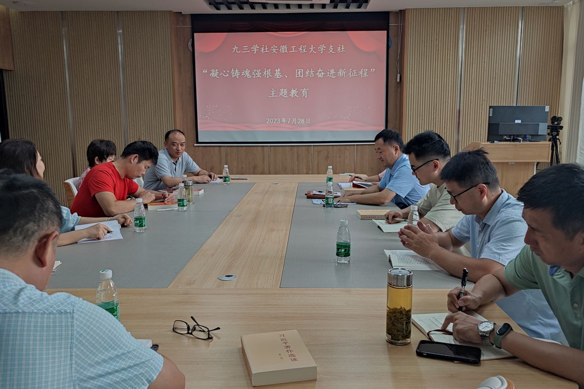 本网讯 7月28日,九三学社安徽工程大学支社在A座313会议室开展主题为“凝心铸魂强根基、团结奋进新征程”的主题教育专题学习。校党委常委、宣传部(统战部)部长孙浩然作报告,支社在芜社员参会学习。会议由支社主委葛愿主持。