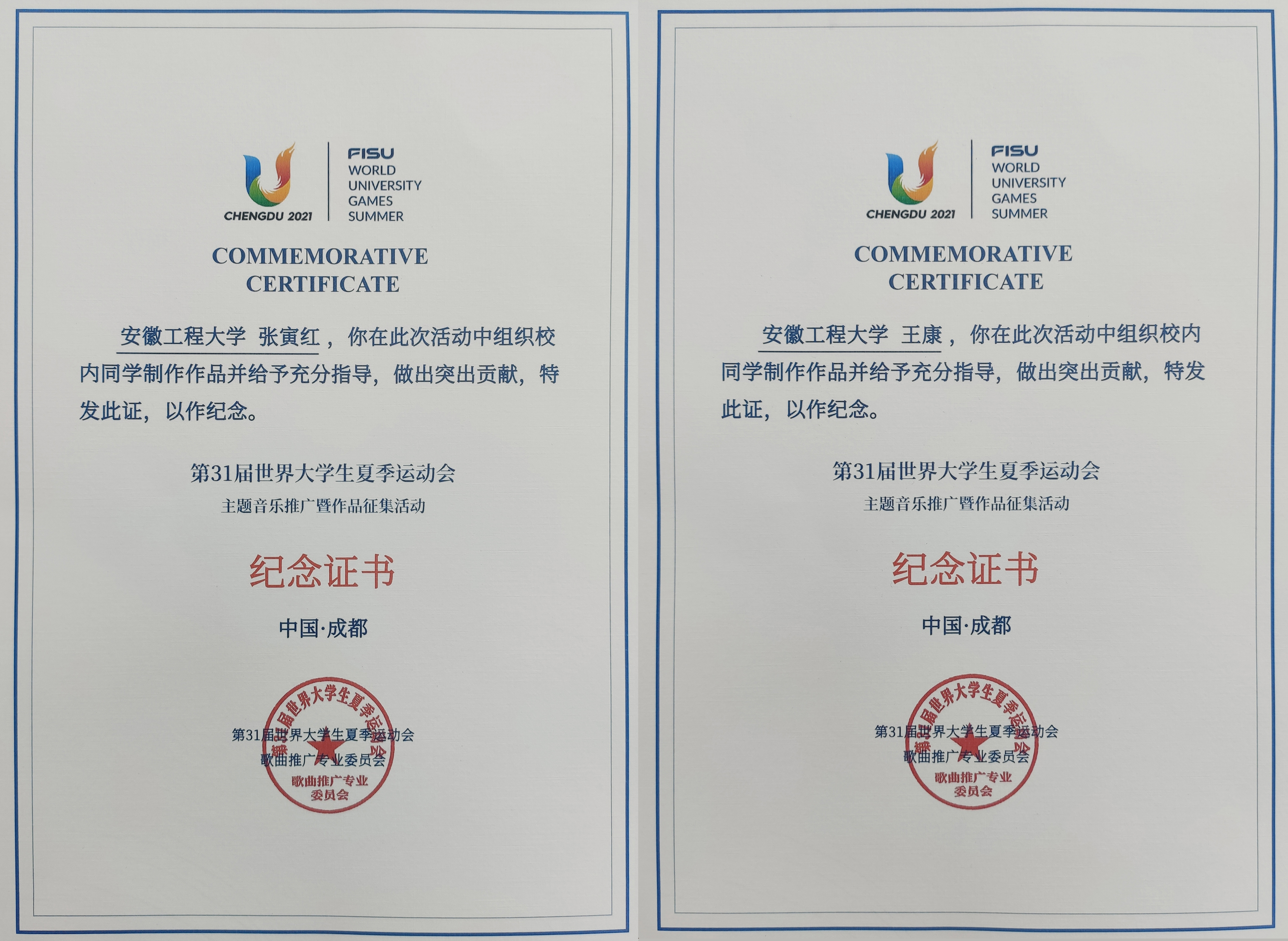 本网讯 为更好地展现大运会精神,传播大运会歌曲,“以声传声,听见大运”,第三十一届世界大学生夏季运动会组委会面向全国高校开展大运会主题音乐推广征集活动,我校学子作品成功入选主题推广曲目《爱是一样的》全球同唱活动参演名单,提交的原创作品被评为优秀作品,并获评优秀组织单位。张寅红、王康获评优秀指导教师。