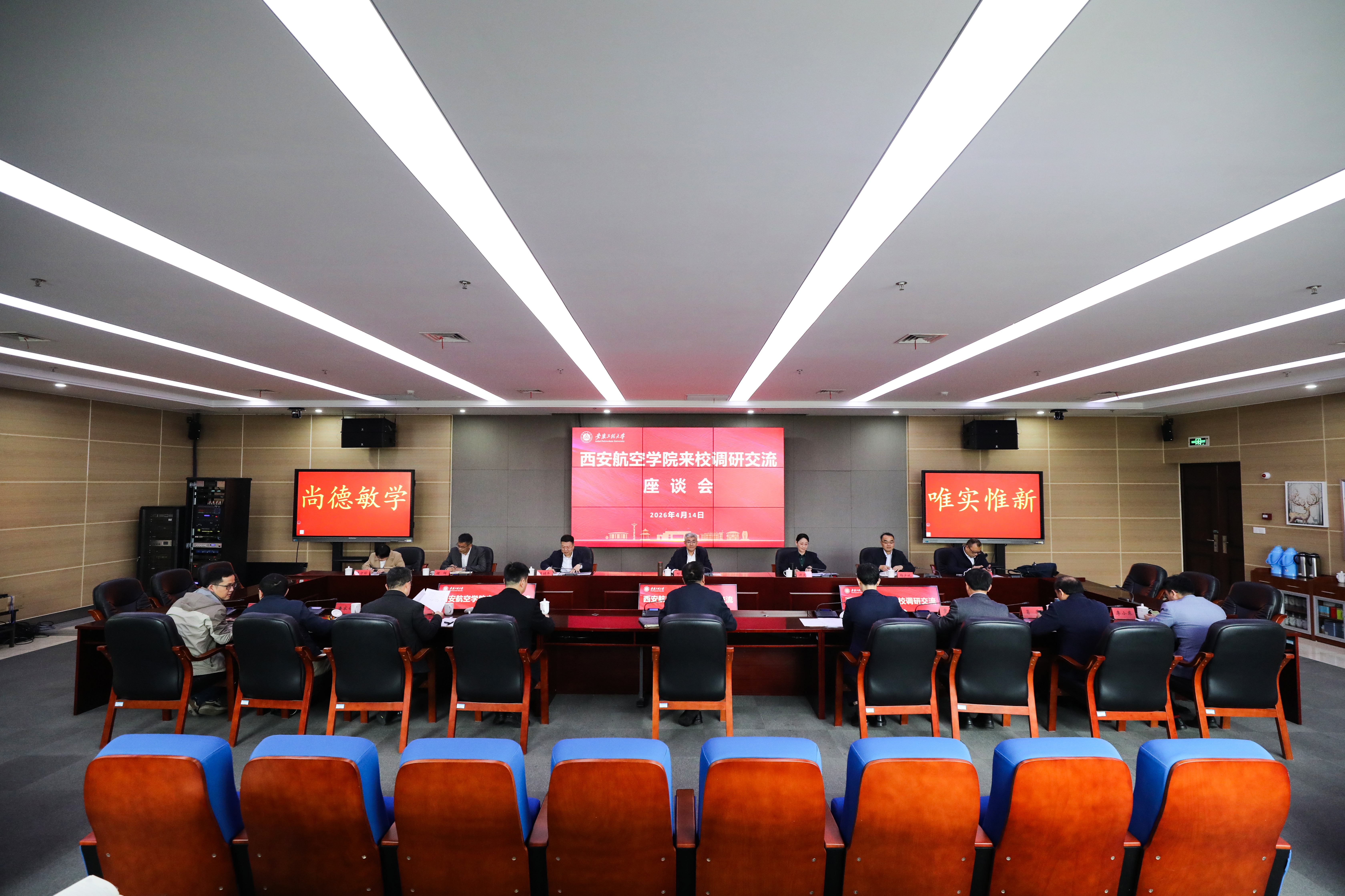 本网讯 4月14日,西安航空学院党委书记祁玉龙带队来校调研交流。我校党委副书记、校长黄友锐热情接待了祁玉龙一行,并主持召开交流座谈会。西安航空学院党委委员、副校长许文丹,我校党委常委、副校长凤权参加调研活动。