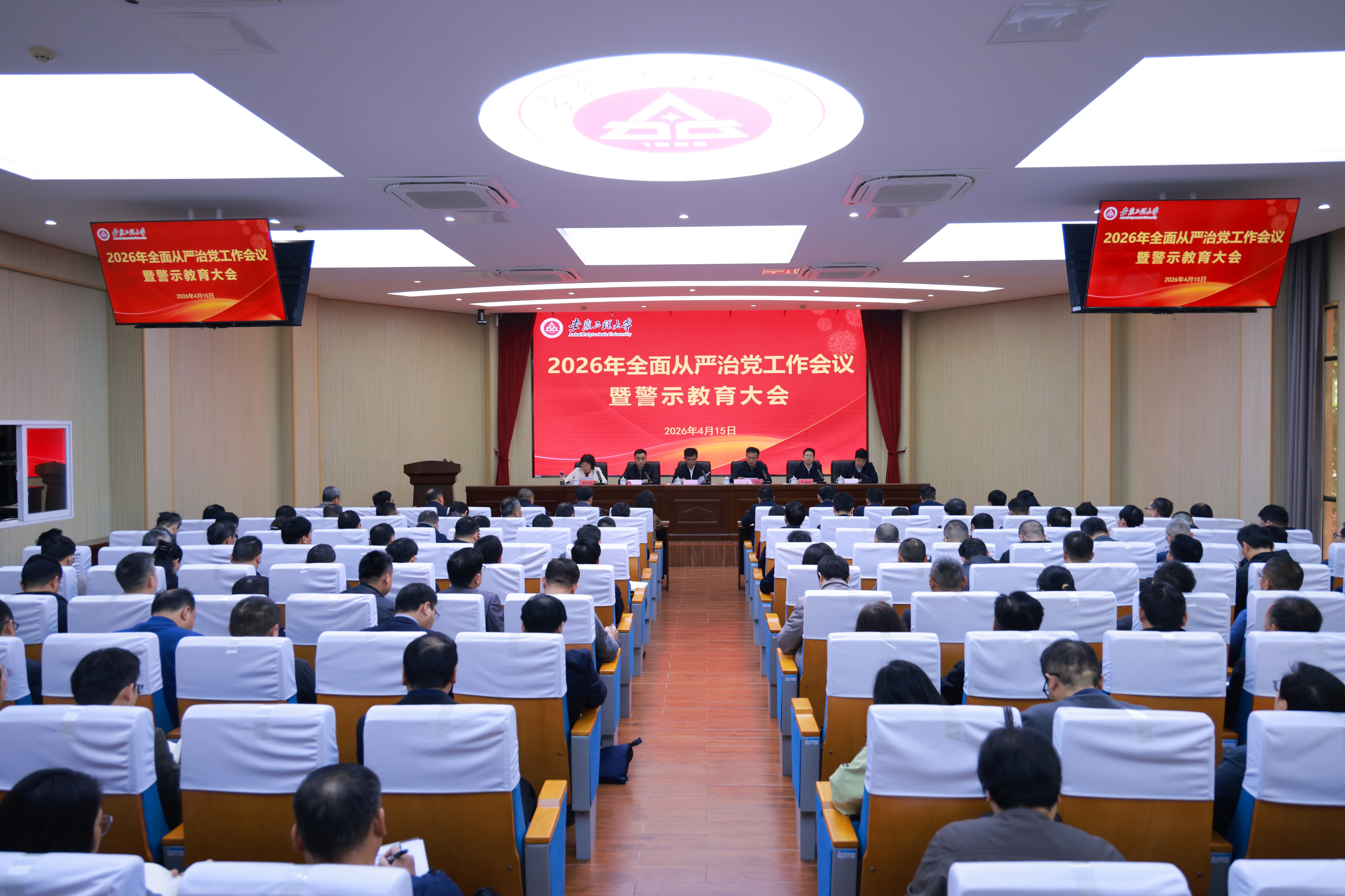 本网讯 4月15日,学校在A座104会议室召开2026年全面从严治党工作会议暨警示教育大会。校党委书记卢平,校党委副书记、校长黄友锐,校领导郑健、程双四、周虹屏、张开炳出席,全体中层干部参加。会议由黄友锐主持。