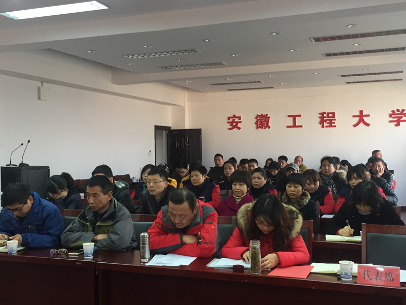 后勤服务集团总经理胡长新向大会作后勤服务集团2016年工作报告。报告总结了后勤服务集团2016年党建、党风廉政建设工作,师生后勤服务保障规范校园快递服务、学生食堂监管、新生生活用品上铺、师生医疗服务、幼儿园等方面的创新工作及在全国、省级行业获得的荣誉。报告同时指出了集团在基础设施条件、工作人员数量及层次存在的问题。对2017年打造新型大学后勤服务保障体系的工作思路进行了宏观部署。最后将省委第三巡视组对学校党委专项巡视后勤服务集团整改情况作了说明,传达了中共安徽工程大学“管党治党宽松软问题”专项治理方案精神。
