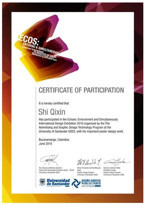 2016哥伦比亚ECOS本土文化国际海报邀请展入展证书