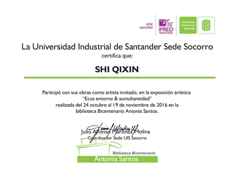 桑坦德工业大学是哥伦比亚排名前十的规模巨大的公立研究型综合大学,史启新的作品被该校收藏,体现了其设计艺术正走向世界。