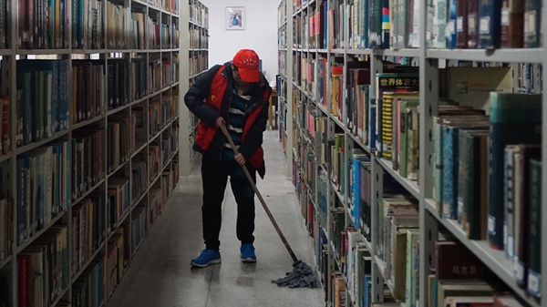 志愿者于下午三点准时在图书馆西馆集合,经过简单的人员分配后,大家很快就投入到各自的工作中。拖地、扫尘、擦拭书架等各项工作都有条不紊的进行着。为了不打扰正在图书馆学习的同学,志愿者们特意放轻动作,轻声细语。经过一个小时的打扫和整理,图书馆的书架、书桌、地面和图书馆的各个角落都焕然一新,原本有点杂乱的图书变得干净整齐。