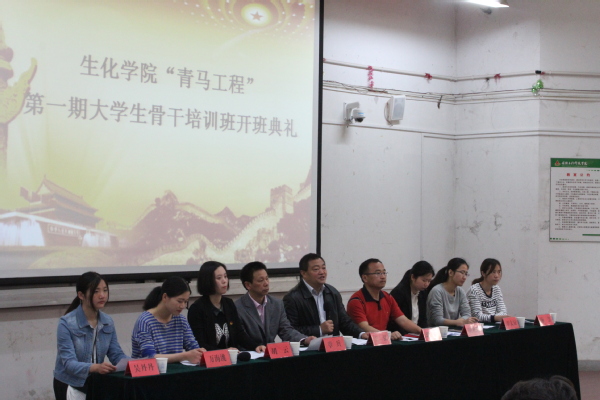 参加开班仪式的还有学院党委副书记章兵、校团委副书记郭广春和学院团委委员。本次培训班学员是来自学院2015级、2016级各班级的两委委员和20名入团积极分子,共计140余人。