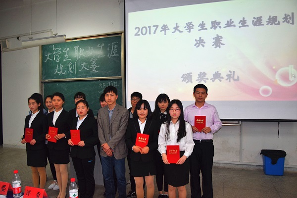 外国语学院2017年大学生职业生涯规划大赛决赛于4月26日在6教215举行。周亮和荣星月同学荣获本次大赛的一等奖。辅导员张君及16届全体学生观看此次比赛。