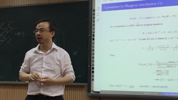 徐亦达还做了题《Building a News Portal using Time-varying Determinantal Point Processes (DPP)》,整场报告深入浅出,让老师们对机器学习前沿研究有了较为深刻的理解。
