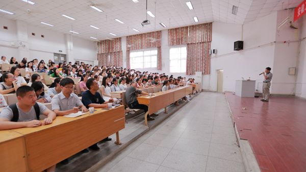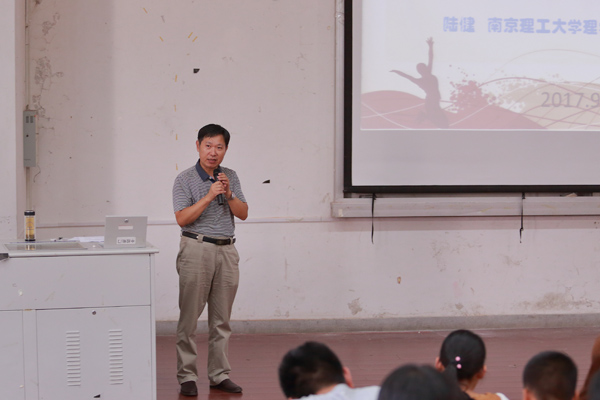 9月12日,南京理工大学理学院院长、博士生导师陆健教授应邀在2教报告厅与数理学院2017级新生畅谈大学生成才之路。数理学院党委书记周毅仁、副书记水心宝、团委书记(学工秘书)郭亚勤、全体辅导员与2017级新生一起聆听了报告。报告会由数理学院院长费为银教授主持。