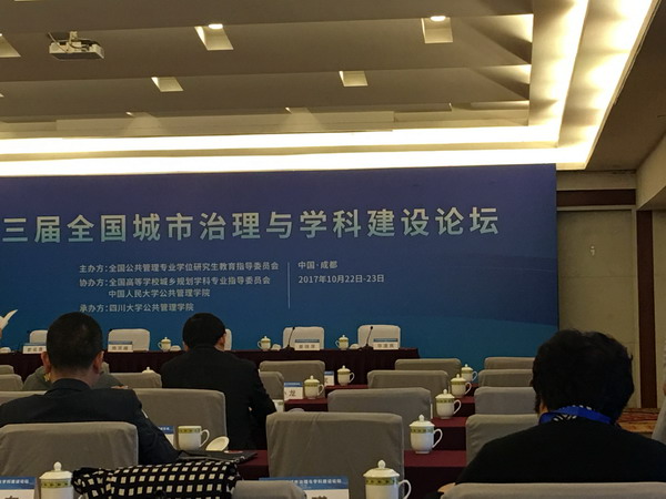10月23日,由全国公共管理专业学位研究生(MPA)教育指导委员会主办,四川大学公共管理学院承办的第三届全国城市治理与学科建设论坛在成都金牛宾馆隆重召开。来自中国人民大学、南京大学、清华大学、四川大学等多所MPA培养单位的70余名教师参加了会议,我校人文学院教师包先康与周纯参加了本次研讨会。