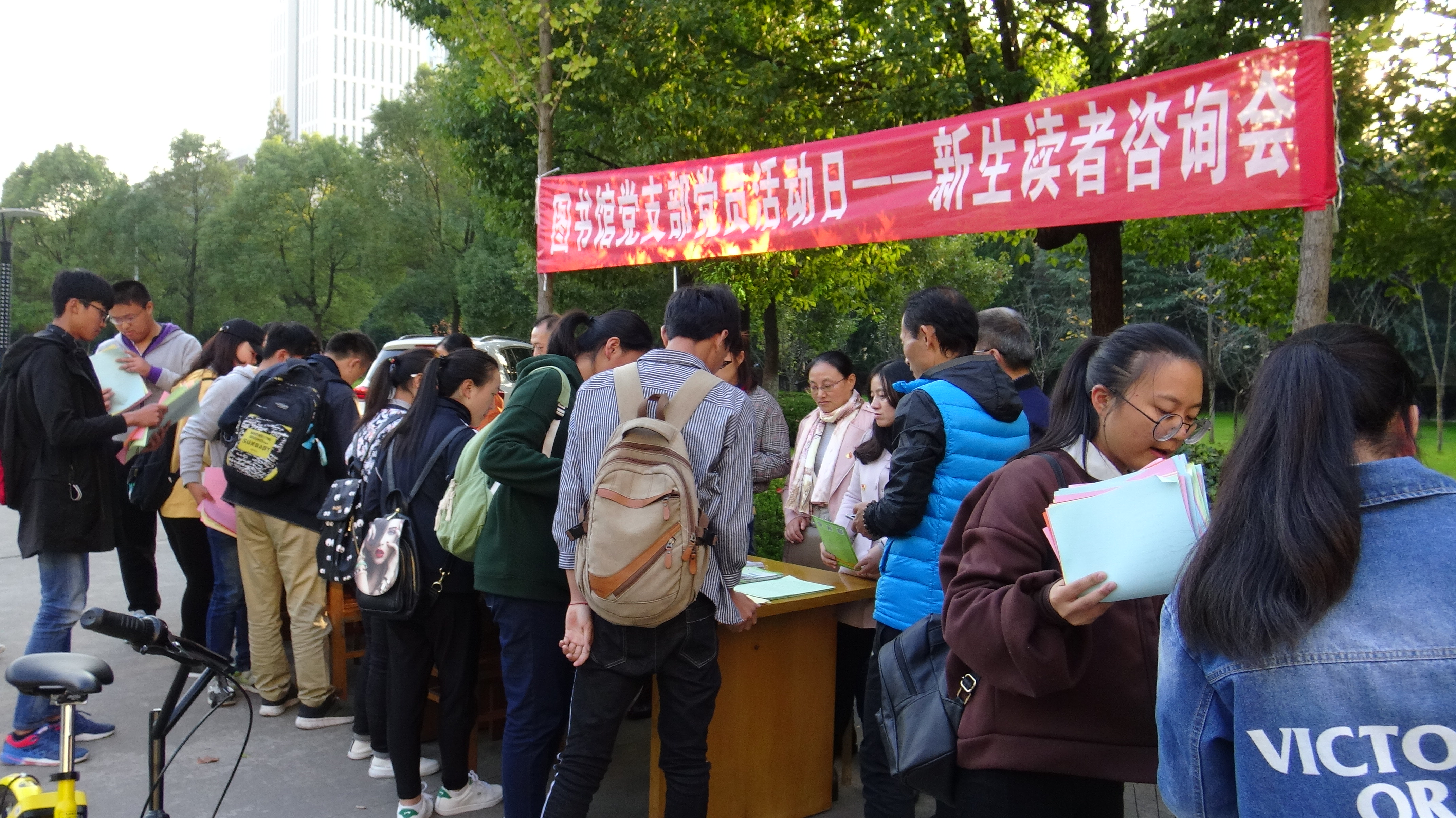 活动现场,前来咨询的新生读者络绎不绝,双方互动热烈。党员们认真倾听读者对图书馆的意见和建议,积极主动的宣传介绍图书馆数字资源、发放宣传材料,耐心细致的解答读者在利用图书馆过程中遇到的问题,详尽的解释各类资源对助力学业有何帮助,服务热情和专业精神深深感染了读者,受到新生读者的热烈欢迎。