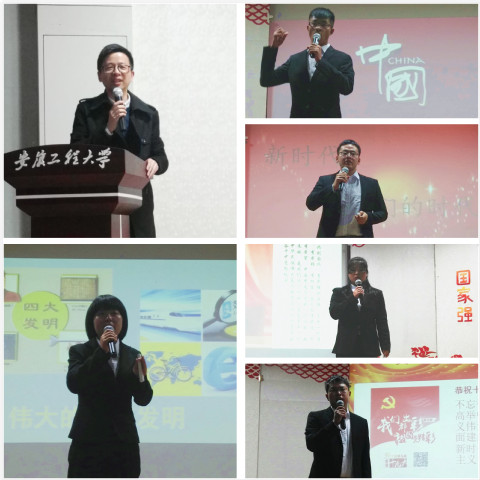 郑光辉以《不忘初心,坚持文化创新》为题,阐述了自己如何不忘初心,坚持文化创新思维,并号召同学们通过文化软实力实现祖国快速发展;辛松通过梁启超先生的“中国少年说”,以《少年强则国强》为题,慷慨激昂的阐明中国的未来要靠青年一代,青年一代决定了中国的未来,我们青年大学生更应走在时代前列;周东海的《以梦为马,征程新时代》的演讲,语言激情澎湃,为我们展现了中国如今强大的实力,告诫我们要以梦为马,不忘初心,砥砺前行;叶清则以《回顾历史,逐梦未来》为题通过对比新老四大发明,讲述了当今中国的快速发展,希望同学们能奋勇争先逐梦未来;而来自贫困家庭的选手杨志以自己为例,声情并茂的讲述了党和国家对其本人和家庭的关怀照顾,语言朴实无华但有力且坚定,他用自身经历告诉我们不论出身如何都应树立为中华之崛起而读书的坚定信心。在即兴演讲中,各位选手也充分发挥自己的聪明才智,引经据典、谈古论今,全力展现自己的风采,现场观众为选手的精彩表现不时报以热烈的掌声。