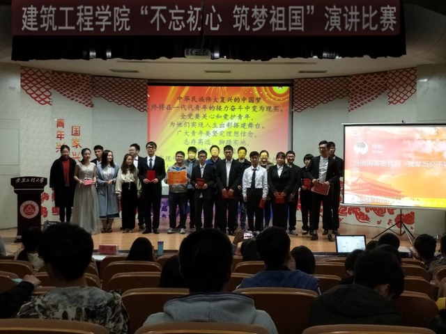 为了积极响应习近平总书记“不忘初心 牢记使命 为实现中华民族伟大复兴的中国梦不懈奋斗”的号召,引导广大青年学子学习好、宣传好党的十九大报告中的新理念新思想新战略,10月31日晚,建筑工程学院在校学术报告厅隆重举行“不忘初心 筑梦中国”主题演讲比赛决赛。比赛邀请校党委组织部组织科科长梁雪松、计算机与信息学院团委书记马晓琼和四名学生代表担任评委。