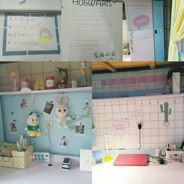 评比中发现每间寝室的同学对本次比赛都非常重视,同学们兴趣盎然、创意丰富。他们认真策划、精心布置,充分发挥每个同学的特长和想象力。男生寝室里霸气的壁画,苍劲的书法,整齐的枕被,鲜艳的小红旗,无一不透露着外国语学院男生的青春活力与炙热情怀。女生寝室清新柔和,有以绿色为基调,清新自然;有以粉红为背景,温暖柔和;尤其是小彩灯、小盆栽的摆放更是为其锦上添花,即使是在拥挤的6人间,同学们也把寝室收拾得井井有条。站在室内透过窗外校园秋天金黄色的美景与室内相应成辉,无比温馨。