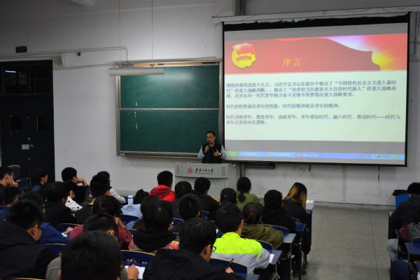 授课伊始,郭广春针对时代与青年的关系进行了解释。他提出,时代的性格就是青年的性格,时代的精神就是青年精神,时代召唤青年、塑造青年、成就青年,青年感知时代、融入时代、推动时代。这句话明确地阐述了时代与青年的内在逻辑,让同学们了解了时代与自身的紧密联系;郭广春围绕“共青团的由来”、“团支书的必备秘籍”、“中华民族复兴,我们应该怎么做”等三个方面展开阐述。首先,用丰富的历史知识和幽默的语言对共青团的由来进行了细致化阐述。其次,阐述了推优入党、中国共青团团旗、团徽和团歌的由来,让同学们了解到了共青团的详细历史,学习到了丰富的知识,并针对团支部的工作开展进行了详细介绍。再次,郭广春就“中华民族复兴,我们应该怎么做”,给出了详细的解释,要求大家务必牢固树立新思想,时刻牢记新使命,刻苦训练新本领,奋发展现新作为,为青马班学员们指明了奋斗和前进的新方向。最后,郭广春引用李大钊的一句话“以青春之我,创建青春之国家,青春之民族”,再次强调了时代与青年的关系。