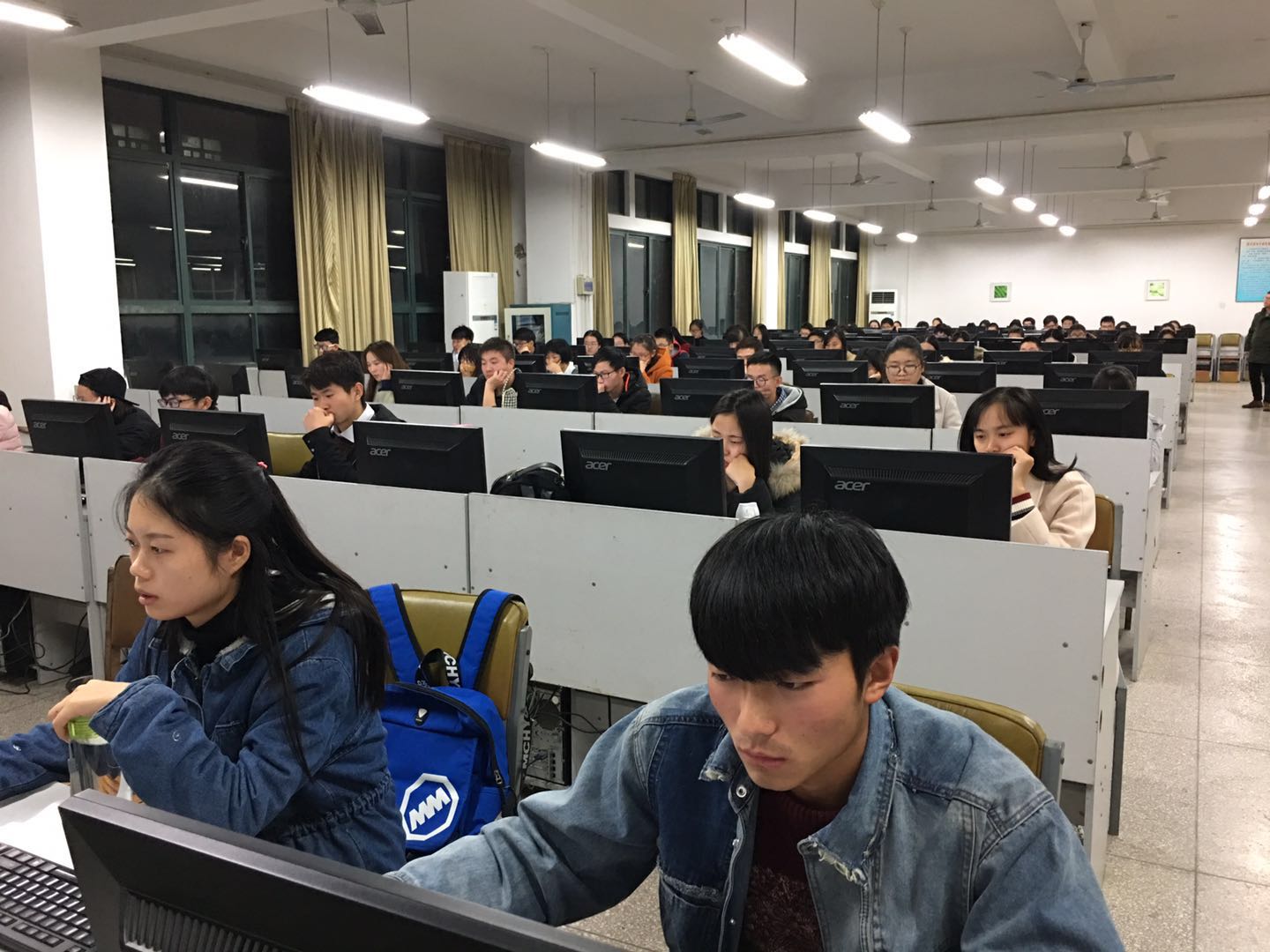 11月21日下午,2017级新生利用图书馆知识竞赛在东图书馆二楼电子阅览室如期举行,全校12个学院的参赛选手准时参加了比赛。