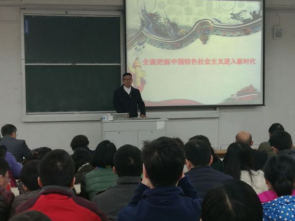 陶玉贵代表学院党委对刘伟的宣讲表示感谢,并指出十九大报告意蕴深远,值得大家深入学习和领会,希望大家要读原文,见真理,深刻领会其中所蕴含的智慧,用马克思主义中国化最新理论成果指导自己的实践。