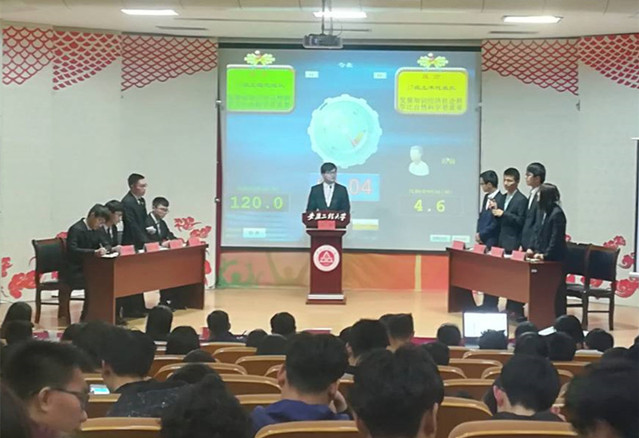 经过初赛、复赛的激烈角逐,建筑16级、给排水16级、土木17级和工程17级四支队伍脱颖而出晋级四强。首先进行的上半场是土木17级和工程17级的季军争夺赛,双方围绕“发展知识经济,自然科学和社会科学谁更重要”展开辩论。正方代表队工程17级以发展知识经济首先要发展知识,并以马克思主义理论“科技是第一生产力”佐证说明自然科技创新的重要性,通过开篇立论抢占思辨的制高点,并欲通过明确定义引导反方与已达成共识;而反方代表队土木17级则以苏格拉底的名言开题,说明思想的重要性,并以核科技为例强调核能如不加控制也可能成为灾难,强调社会科学的重要性,双方观点清晰,不分伯仲。自由辩论环节异常精彩,双方深究知识经济的发展与自然科学、社会科学的关系,双方唇枪舌剑,各不相让,反方二辩通过“知识经济的发展是人作用的结果,而人的发展源于社会科学”的观点不断压制对方,双方旁征博引,巧妙攻辩,现场观众为辩手精彩的表现不时报以热烈的掌声。