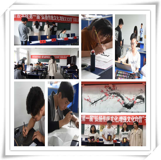 为了丰富校园文化生活,提升学生的文化修养和审美情趣。4月下旬下午,纺织服装学院团委、学生会和校书法协会联合开展的“弘扬传统文化增强文化自信”书画大赛。本次比赛的项目包括软笔类、硬笔类和绘画类。经过层层筛选后,最终有15人晋级决赛。