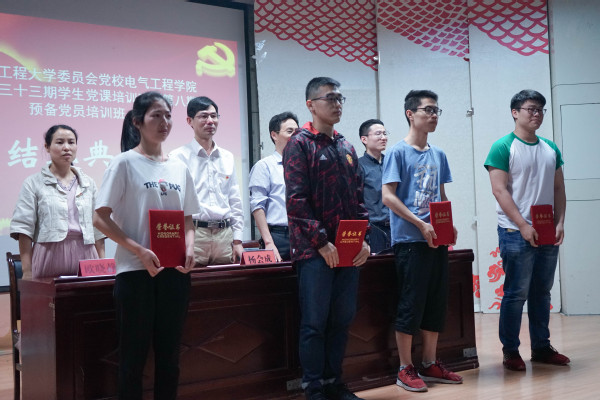 在庄严的国歌声中结业典礼拉开了序幕。首先,陶涛对本期培训班工作进行总结,郭全根宣读了《关于表彰电气工程学院分党校第八期预备党员培训班优秀学员的决定》和《关于表彰电气工程学院分党校第三十三期党课培训班优秀学员的决定》。主席台就座的领导和老师为优秀学员代表颁发了荣誉证书。