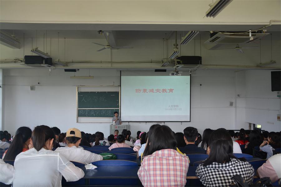 为深化“平安校园”建设,提高广大学生应急避险、自救自护的能力,5月23日下午,人文学院于5教217开展防震减灾教育活动。院学团老师以及大一全体学生参与此次活动。