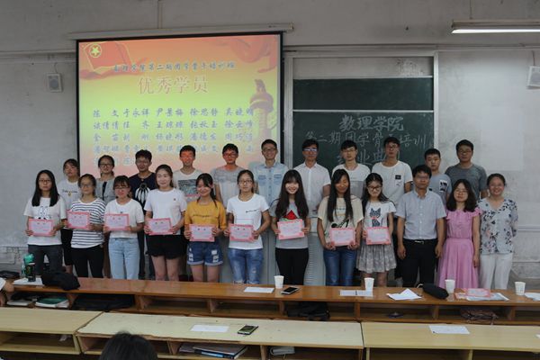6月21日下午,数理学院第二期团学骨干培训班结业典礼于2教107教室举行。数理学院党委副书记水心宝、团委书记(学工秘书)郭亚勤、培训班班主任满志宏、蒋书云以及全体培训班学员参加了典礼。结业典礼由郭亚勤主持。