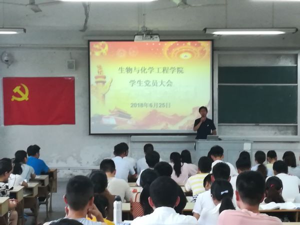 6月25日下午,生化学院召开学生党员大会,会议由学院团委书记胡云主持,学院党委副书记王辉出席,学生党支部书记苏燕南、彭经伟、胡艳瑾和全体学生党员参加了会议。