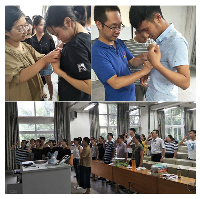 自6月中旬以来,该院各党支部采用丰富多样的形式开展对预备党员的教育活动。机制专业学生党支部赴王稼祥纪念馆接受革命传统教育,并重温入党誓词;材料、车辆、装备专业学生党支部之间联合开展入党宣誓活动,更加隆重、更有仪式感;材科专业学生党支部与材料系教工党支部共同开展宣誓仪式,教工党员为学生党员一一佩戴党员徽章。在鲜红的党旗、醒目的主题横幅下,新党员郑重地举起右拳,用内心的声音抒发对党忠诚的决心,面对党旗,他们表达了自己恪守的诺言,更加严格要求自己,自觉把思想和行动统一到习近平总书记系列重要讲话精神上来,深入学习贯彻习近平新时代中国特色社会主义思想和党的十九大精神,始终保持共产党员的先进性、发挥党员的先锋模范作用。