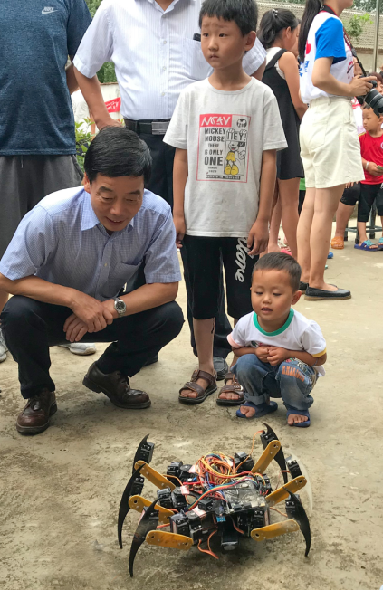 与此同时,同学们还利用自己制作的蓝牙小车、旋转LED、炫光心形灯等科技作品为当地留守儿童开展了科普宣传活动。