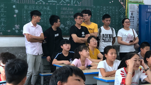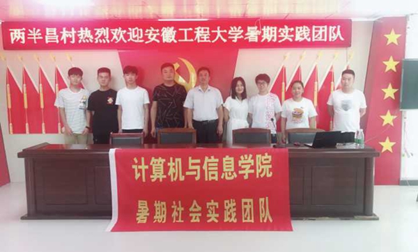 7月9日,计算机与信息学院党委副书记章靖平、团委书记马晓琼一行前往阜阳颖上县三十铺中心学校看望慰问在这里参加暑期“三下乡”社会实践的同学们。