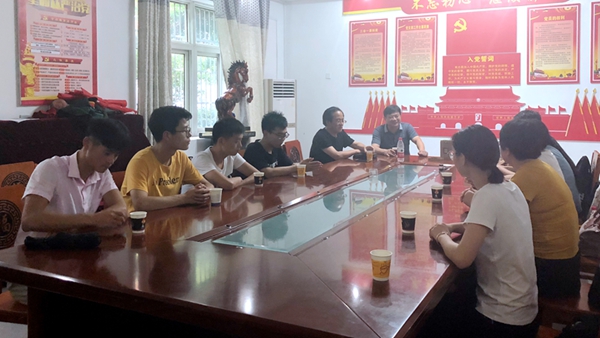 章靖平一行与中心学校老师和社会实践队员们进行了座谈,中心学校校长陈继超代表学校向学院老师和学生的到来表示热烈欢迎,对学生们前一阶段的工作给予了充分肯定。章靖平介绍了学院基本情况及今年“三下乡”活动的安排,了解同学们在这里的活动开展情况,希望同学们要珍惜机会,勤思多问,利用社会实践机会多调研、多思考、多探索,积极了解国情区情;要沉心静气,深入群众,倾听群众的心声,学习群众的勤劳智慧;要结合专业,学以致用,将专业知识运用到基层工作中,达到在实践中受教育、长才干的目的。