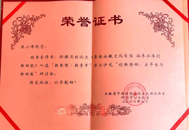 该期学习沙龙研讨的主题是“创新驱动:主平台与新动能”,中共安徽省委宣传部、省中国特色社会主义研究中心在2018年7月就印发了学习沙龙征稿通知,8月份我校中国特色社会主义研究基地组织相关研究专长的教师积极撰写理论文章,该院教师张小峰博士撰写的《厚植安徽文化自信涵养江淮创新动能》入选本期学习沙龙研讨会论文集。
