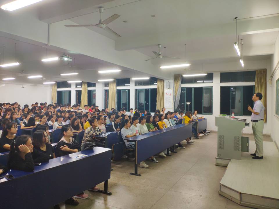 杜松涛、钱媛媛两位老师向全体学生阐释了大学生心理健康的内涵和重要性,指出了大学新生容易出现的问题,给出了解决问题的四点建议:聆听心声,生活状态和评价体系的突然变化容易造成自我认同危机,要学会适应问题;人际交往适应,在大学交往中要学会主动、包容、互助和尊重;构建支持系统,遇到问题时要相信自己,相信朋友,相信父母;换个角度看问题,换个角度有利于跳出狭窄的思维模式,开阔视野,即“跳出来才能走的更远”。
