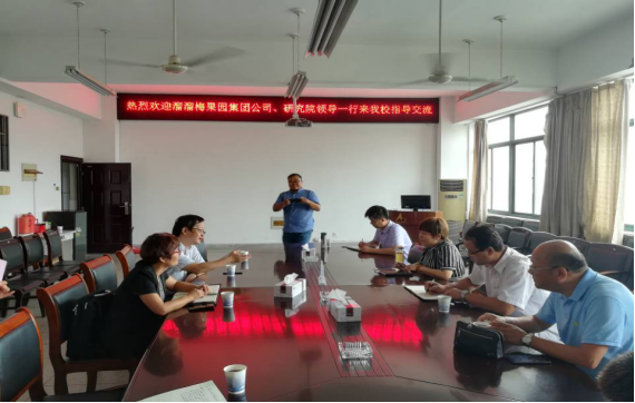 9月14日,溜溜果园集团公司副总裁宁鹏飞、溜溜果园研究院院长胡燕、溜溜果园集团独立董事江南大学教授陆健等一行4人来生化学院考察指导,考察期间双方就进一步的合作进行了座谈,学院院长薛正莲、副院长高建纲、副院长杨仁春、食品工程系主任季长路及相关教师参加了座谈。薛正莲代表学院对专家们的到来表示热烈的欢迎,她从学院的办学历程、专业设置、师资力量、人才培养、科研及社会服务等方面作了介绍。胡燕简要介绍了溜溜果园集团及其研究院的基本情况,她表示集团和学院多年来合作关系良好,希望今后能够进一步加强产学研合作,创造机会多交流学习,相互促进。陆健围绕大健康产业,就开展合作的深度和宽度,延伸产业链等方面进行了补充。双方围绕学生实习和就业、公司员工培训、项目合作、平台共建等相关内容展开了深入交流。座谈会后,公司领导一行参观了学院食品科学与工程专业及相关实验室。